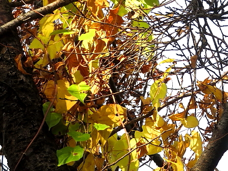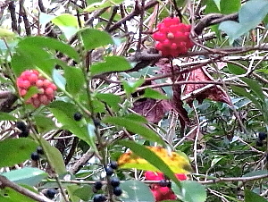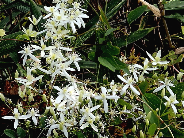 2025年11月24日 一月ぶりに日の隈山を周回した。秋も終盤を迎え、咲いている花の種類や数は少なくなっている。そのような中、驚いたのはセンニンソウである。この花は普通、夏の終わりから初秋の頃に見られる。ところが、今日はその白い花が見頃を迎えている。ここのセンニンソウは何らかの影響を受けて、花が遅れたのであろう。 山中には色々な木の実が熟れている。そして、木々の色づきも順調なようで、最も鮮やかになる時期は近そうであった。 |