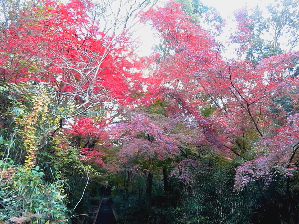 長い階段はカエデのトンネルの中 |