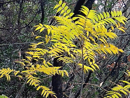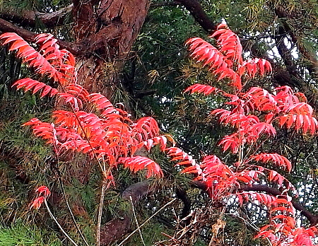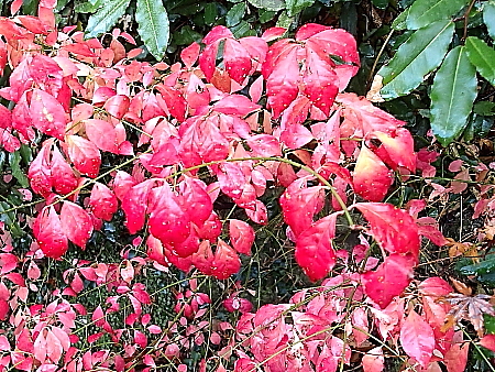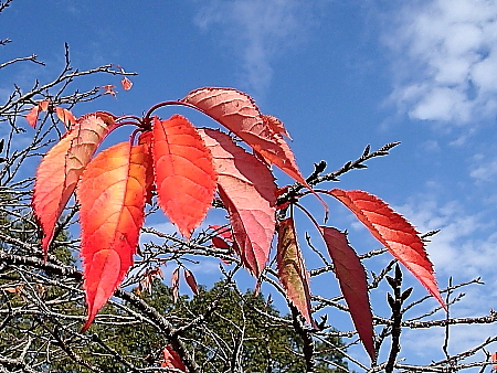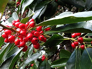 2025年12月20日 今日は秋に戻ったように暖かい。山道では冬眠を中断して出てきたであろう、二種類のチョウに出合う。道沿いに咲いていたのはサザンカやシマカンギク、それにツワブキなどである。 山中には色々な木の実が見られ、ラクウショウ(落羽松)の松ぼっくり以外は全て赤い色であった。そこで、今ごろの実はなぜ赤いのか、改めて調べてみた。すると「赤は鳥が見つけやすいから」であった。赤い実は多くの鳥が次々に食べて種子を運び、その分布を広げて繁栄してきたという。それにもう一つ。実はすぐに落ちることなく、できるだけ木に残って鳥に食べ尽くされるように進化してきたそうである。 |