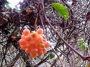 ビナンカズラの実 真っ赤に色づくのが遅れ、 この色になっているのであろう |