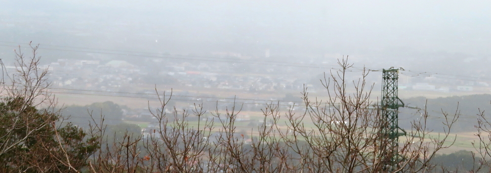中腹からの眺め 雪空に霞む佐賀平野 |
