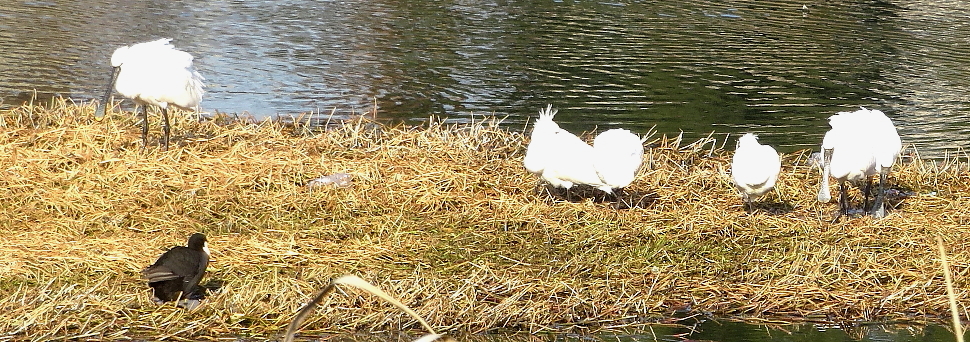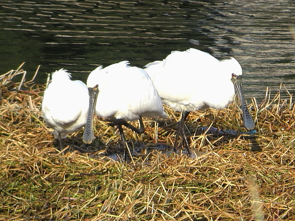 羽を休めるクロツラヘラサギ ある大きな池 |