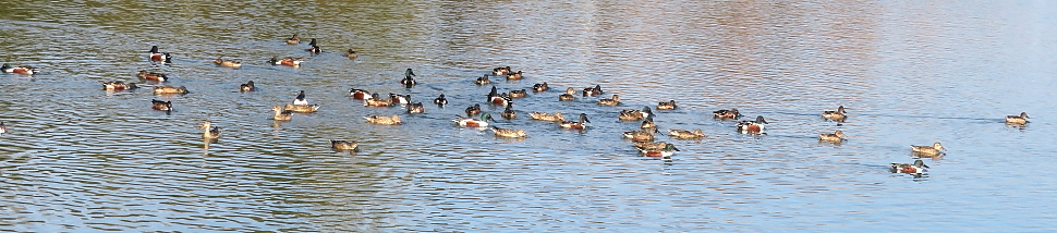 登山口がある公園の池に群れるカモ |