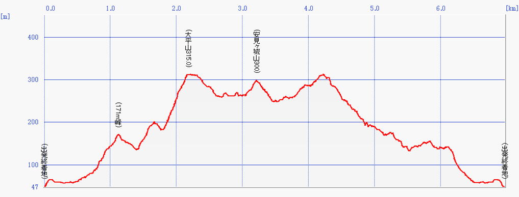 171m峰~大平山(315.1m)~安見ヶ城山(300m) 福岡県 |