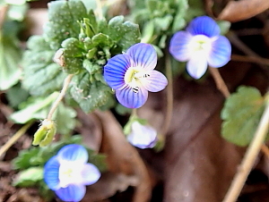 2026年2月20日 河内ダムの湖畔から、奥山を経て杓子ヶ峰へ周回した。木立の中にはヤツデが実り、緑の小さな実がたくさんついている。さらに進むと、シュンラン(春欄)の茎が伸び始めていて、その花の頃が楽しみだ。周回路の日当たりの良いところにはフラサバソウやオオイヌノフグリなどが咲き始めている。暖かな日射しの中を進んでいると「ホー」・・・、少し間をあけて「ケキョ」。今年になって始めて聞くウグイスの声がした。ウグイスは暖かな陽気に誘われて、さえずりの練習を始めたのであろう。^^ |