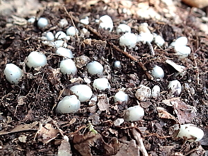 頭が見え始めたギンリョウソウ |