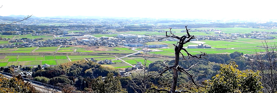 中腹からの眺め 麦の緑が濃くなった佐賀平野 |