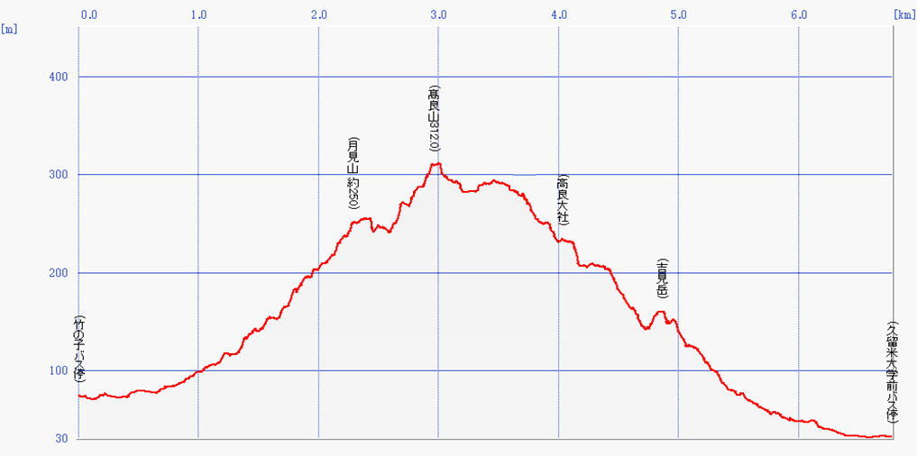 月見山(約250m)~髙良山(312.0m)~吉見岳(147.5m) 福岡県 |