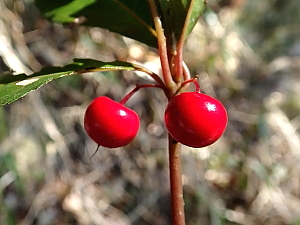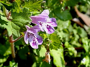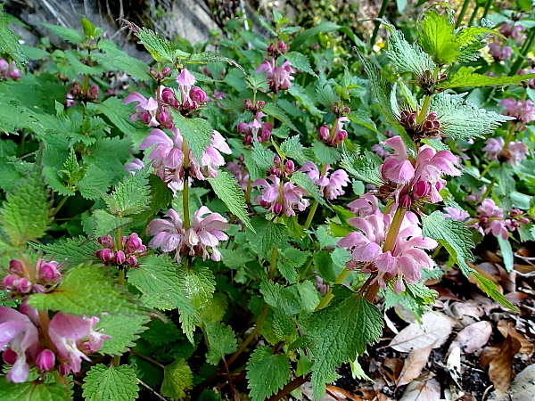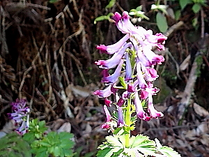 | 2026年4月3日 河内ダムの湖畔から、奥山を経て杓子ヶ峰へ周回した。 樹林を過ぎるあたりから花が現れ、杓子ヶ峰山頂周辺の桜は青空を背景に咲き誇っている。 周回路の日当たりの良いところにはワラビが立ち上がり、今が盛りのオドリコソウも続く。渓流に沿って進んでいると、「ホーホケキョ」。近くからウグイスの大きな声がした。ウグイスはヤブを好むそうで、渓流沿いに残るヤブを住処にしているのであろう。^^♪ |