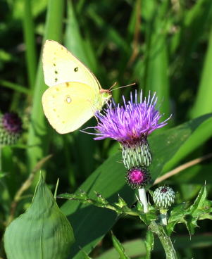 数百キロ離れた南方の島から渡ってくるチョウ「アサギマダラ」がアザミに戯れていました。アサギマダラは、今年初めて見ました。