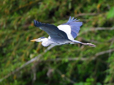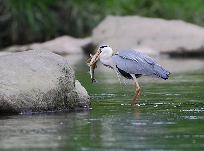 2011年5月20日 山登りと野鳥の観察を一日交代で川原へ。今日の狙いはヤマセミのカップル、一昨日と同じ所で待つ。 この日は鳥たちの動きが活発で、アオサギやダイサギがすぐ近くで魚を捕る。 ヤマセミもダイビングをするが、魚を捕まえる確率は格段に低い。 ヤマセミが魚をくわえて飛ぶ写真は、狙ったのではなく全くの偶然。 右のヤマセミを撮影中に飛び入んできたハプニング。しかし、これも腕のうちかと自画自賛である。 目の前を飛ぶヤマセミを目で追っていくと、遠くの枯れ木に留まった。続いてもう一羽。あわててファインダーで捉えるが、レンズの好適な限界を超えている。 しばらくすると、対岸の若葉に二羽が続いて飛び込んだ。距離は先ほどよりやや近いものの葉に隠れて今ひとつ。なんとか捉えてこの日は終わり。 来月一日は鮎漁が解禁される。野鳥にとってお気に入りのこの辺りは、絶好の漁場でもある。 この撮影ポイントを見つけて三カ月ほどになるが、鮎が落ちる十月頃までは漁師さんや釣り人に場所をお返しすることにして、新たな撮影場所を探したいと思っている。 |