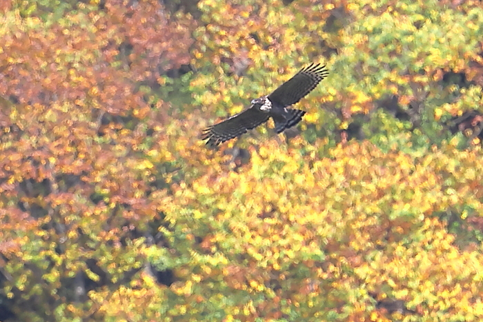 。遠くに現れたクマタカは、色づいた山肌を優雅に舞う。次はもう少し近づいてくるのを期待して、また出かけてみたい。
