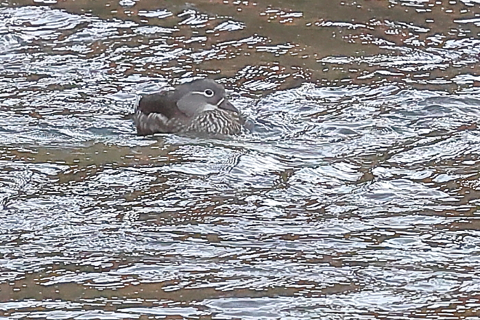 2024~25年 (冬 23) ヤマセミの棲む渓谷へ再び出かけてみた。前回姿を見せたのは♂だけであった。その縄張りの中に♀はいるのかどうか、気がかりである。 夜が明けて間もない現地は霧が出て、視界はぼんやりとしている。撮影には不向きな状況であるが、霧が晴れるのを期待して待つことにした。すると、霧が少し薄くなった頃、♀がやってきた。そして、止まったのは無数にある枝の中で、前回の♂と同じ枝であった。^^ 前回は渓流にカワアイサが姿を見せた。それが今回は、オシドリのカップルが流れに乗って近づいてきた。♪♪ |