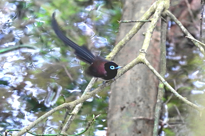 カメラは手持ちである。ところが光が弱く、シャッタースピ-ドは思いっきり遅くして撮影ボタンを押した。その結果、揺れる尾羽はブレてしまった。しかし、この画像もまた趣があって面白いのでは・・・。と、自画自賛である。